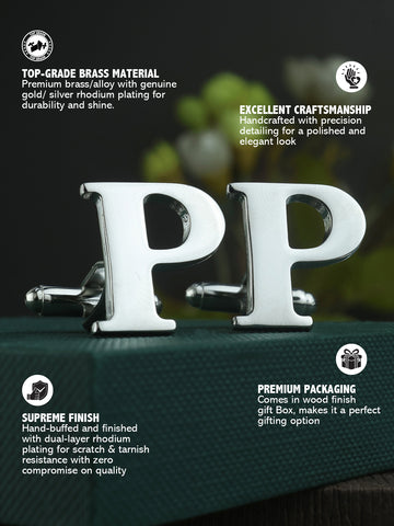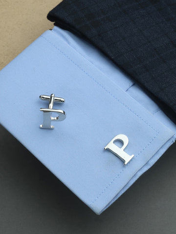 Peluche Silver Coloured Alphabet Cufflink (Letter P)