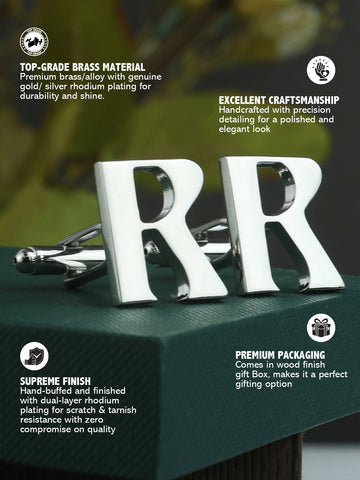 Peluche Silver Coloured Alphabet Cufflink (Letter R)