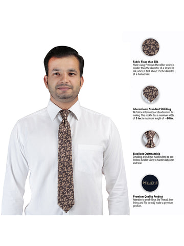 Buy this Brown colored Floral neck tie for men from the house of Peluche, a symbol of timeless style and impeccable craftsmanship. Crafted with precision and attention to detail, this exquisite tie for men embodies sophistication and elegance. Made from the finest materials, the Peluche neck tie exudes quality and luxury. With its versatile design and range of captivating patterns, it complements both formal and casual attire. Whether you're attending a business meeting, a wedding, or a special event, this Peluche tie adds a touch of refinement to your ensemble. Elevate your style and make a statement with the Peluche necktie for men, a true testament to your impeccable taste and fashion sensibility.
