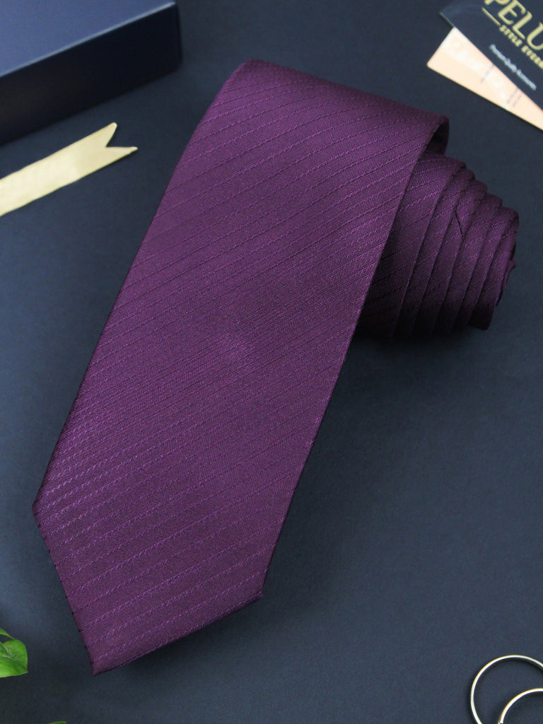 Buy this Purple colored Solid neck tie for men from the house of Peluche, a symbol of timeless style and impeccable craftsmanship. Crafted with precision and attention to detail, this exquisite tie for men embodies sophistication and elegance. Made from the finest materials, the Peluche neck tie exudes quality and luxury. With its versatile design and range of captivating patterns, it complements both formal and casual attire. Whether you're attending a business meeting, a wedding, or a special event, this Peluche tie adds a touch of refinement to your ensemble. Elevate your style and make a statement with the Peluche necktie for men, a true testament to your impeccable taste and fashion sensibility.