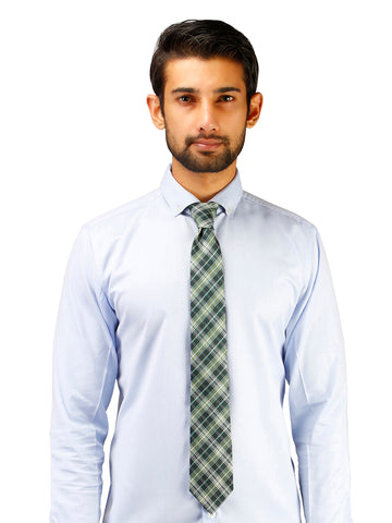 Buy this Green colored Checkered neck tie for men from the house of Peluche, a symbol of timeless style and impeccable craftsmanship. Crafted with precision and attention to detail, this exquisite tie for men embodies sophistication and elegance. Made from the finest materials, the Peluche neck tie exudes quality and luxury. With its versatile design and range of captivating patterns, it complements both formal and casual attire. Whether you're attending a business meeting, a wedding, or a special event, this Peluche tie adds a touch of refinement to your ensemble. Elevate your style and make a statement with the Peluche necktie for men, a true testament to your impeccable taste and fashion sensibility.