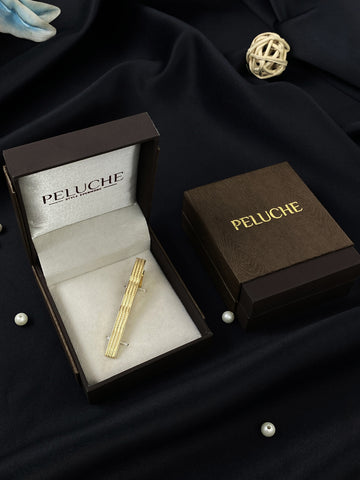 Buy this Gold colored Striped tie pin/ tie clip for men from the house of Peluche, a must-have accessory for the modern gentleman seeking timeless elegance and refined style. Meticulously crafted with precision and attention to detail, this exquisite tie pin showcases impeccable craftsmanship and sophisticated design. Made with high-quality materials, Peluche tie bar for men/ tie pins for men adds a touch of class and sophistication to any tie. With its versatility, it effortlessly elevates your formal attire, business ensemble, or even your everyday look. This timeless accessory is perfect for weddings, special events, or as a thoughtful gift. Enhance your style and make a lasting impression with the Peluche tie clips for men, where craftsmanship meets elegance. Experience the essence of refined fashion with Peluche tiepins and elevate your wardrobe to new heights.