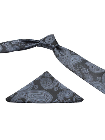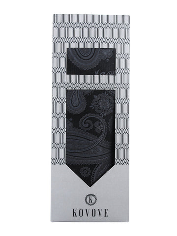 Kavove Black Paisley Necktie and Pocket Square Gift Box