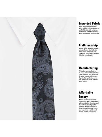 Buy this Black colored Paisley tie and pocket square for men from the house of Kavove, the perfect men's gift combo that effortlessly combines style and versatility. This meticulously curated tie set for men includes a premium tie and a versatile pocket square, both designed with utmost attention to detail by Kavove. The tie, made with fine craftsmanship and quality materials, adds a touch of sophistication to any ensemble. The coordinating pocket square complements the tie perfectly, allowing for endless styling options. This tie gift set for men is the ultimate gift combo, perfect tie gift set, whether it's for a formal event, a business meeting, or a special occasion. Elevate his style with the Kavove tie and pocket square gift set for men.