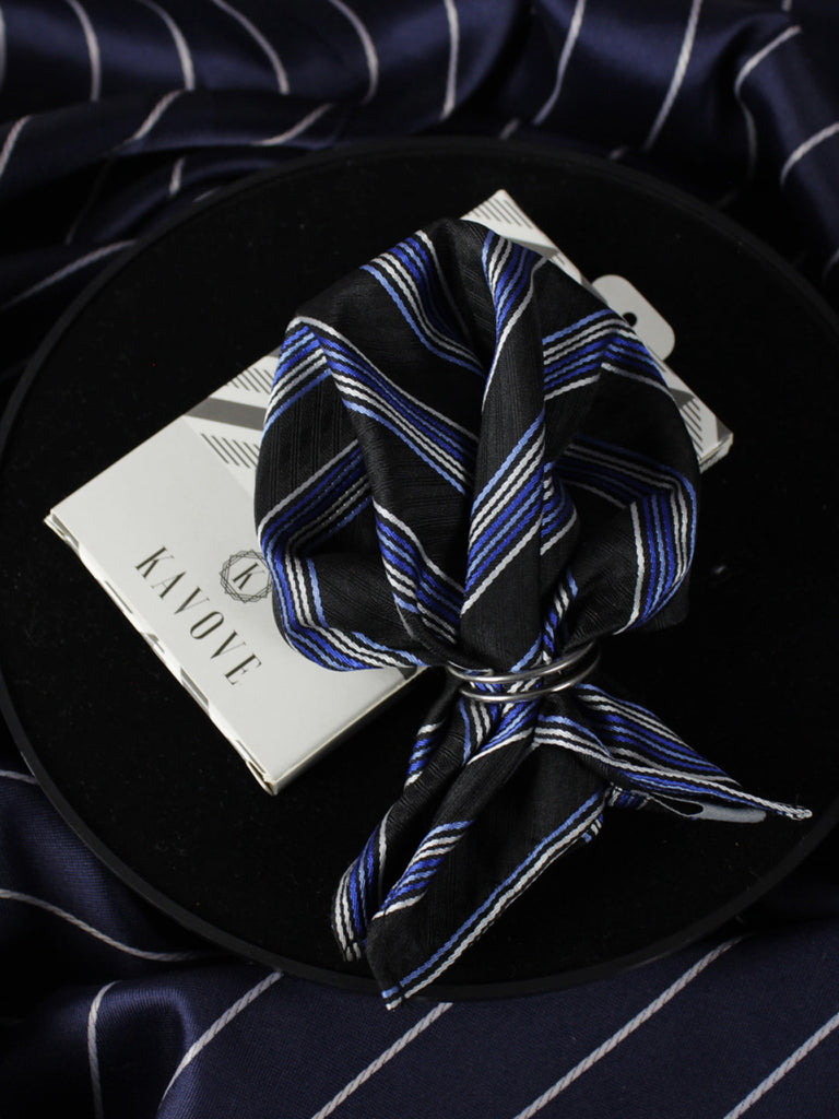 ABOUT THE PRODUCT: Buy this Black colored Striped pocket square for men by Kavove, a stylish accessory that adds a dash of charm to any suit or blazer. Carefully crafted with a keen eye for detail, this pocket square is designed to impress. Made from premium fabric, it boasts a soft and luxurious feel. The versatile design allows for various folding styles, adding a personalized touch to your ensemble. This trendy pocket square by Kavove is perfect for both formal occasions and everyday wear, effortlessly elevating your style. Enhance your outfit and make a statement with this sophisticated accessory. Upgrade your wardrobe with the pocket square by Kavove and showcase your impeccable taste. |