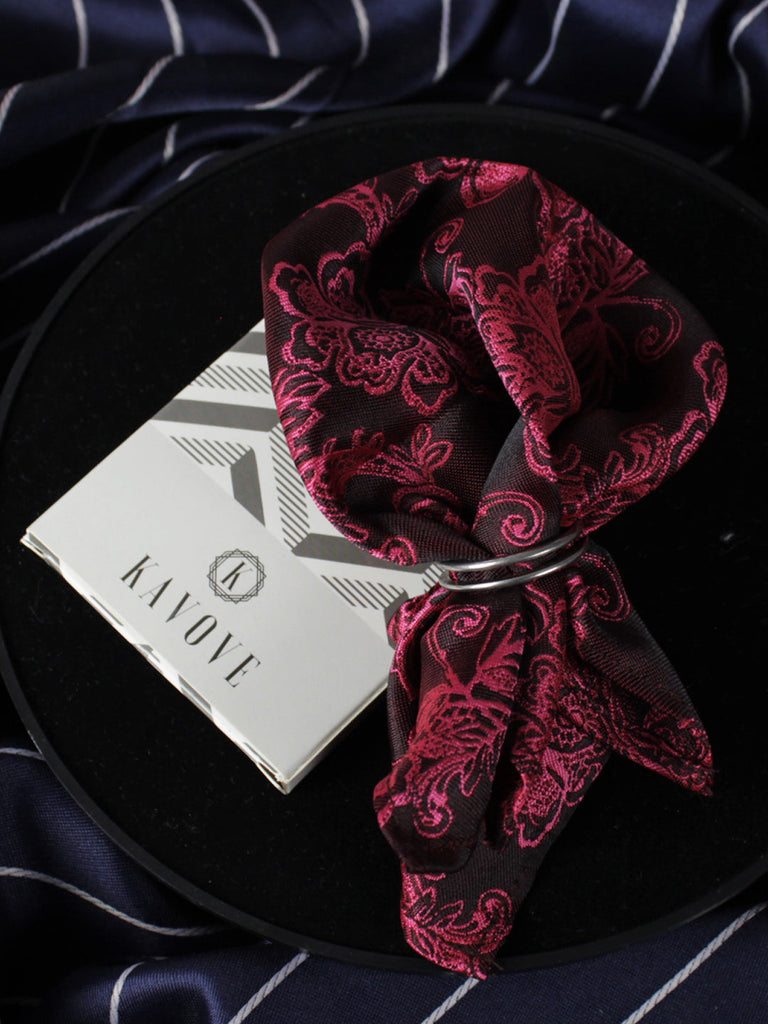 ABOUT THE PRODUCT: Buy this Maroon colored Floral pocket square for men by Kavove, a stylish accessory that adds a dash of charm to any suit or blazer. Carefully crafted with a keen eye for detail, this pocket square is designed to impress. Made from premium fabric, it boasts a soft and luxurious feel. The versatile design allows for various folding styles, adding a personalized touch to your ensemble. This trendy pocket square by Kavove is perfect for both formal occasions and everyday wear, effortlessly elevating your style. Enhance your outfit and make a statement with this sophisticated accessory. Upgrade your wardrobe with the pocket square by Kavove and showcase your impeccable taste. |