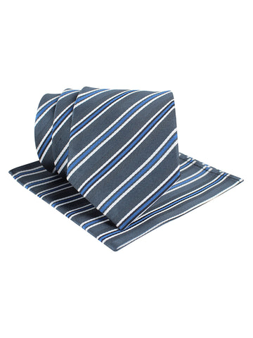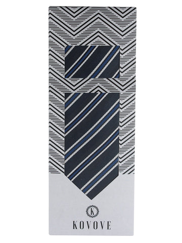 Kavove The Picturesque Striped Black Necktie and Pocket Square Gift Box
