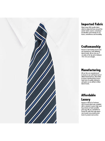 Buy this Black colored Striped tie and pocket square for men from the house of Kavove, the perfect men's gift combo that effortlessly combines style and versatility. This meticulously curated tie set for men includes a premium tie and a versatile pocket square, both designed with utmost attention to detail by Kavove. The tie, made with fine craftsmanship and quality materials, adds a touch of sophistication to any ensemble. The coordinating pocket square complements the tie perfectly, allowing for endless styling options. This tie gift set for men is the ultimate gift combo, perfect tie gift set, whether it's for a formal event, a business meeting, or a special occasion. Elevate his style with the Kavove tie and pocket square gift set for men.