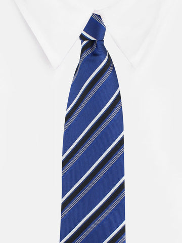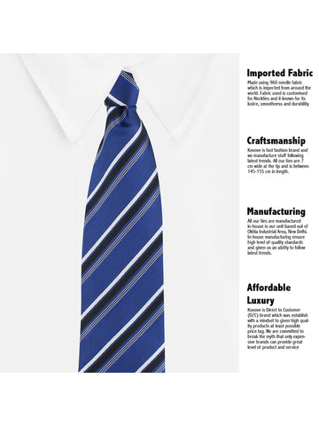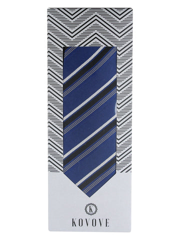 Buy this Blue colored Striped necktie for men from Kavove, a must-have accessory for the modern gentleman. Crafted with care and attention to detail, this necktie combines style and sophistication. Made from high-quality materials, it offers a smooth and comfortable feel. The versatile design of the necktie by Kavove ensures it complements both formal and casual attire, adding a touch of elegance to any outfit. With its easy-to-use and adjustable length, it provides a perfect fit for every wearer. Elevate your fashion game and make a lasting impression with this neck tie for men by Kavove. Upgrade your wardrobe with this timeless accessory and exude confidence and style.