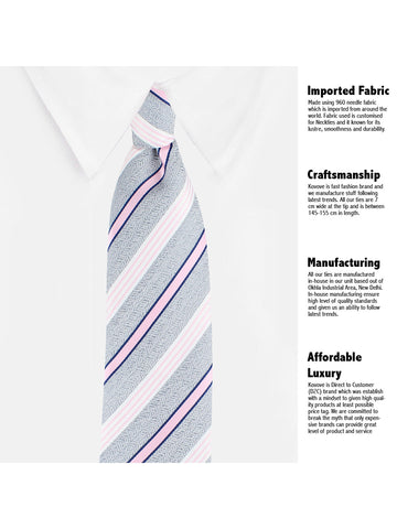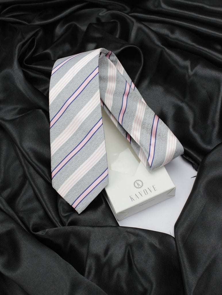 Buy this Grey colored Striped necktie for men from Kavove, a must-have accessory for the modern gentleman. Crafted with care and attention to detail, this necktie combines style and sophistication. Made from high-quality materials, it offers a smooth and comfortable feel. The versatile design of the necktie by Kavove ensures it complements both formal and casual attire, adding a touch of elegance to any outfit. With its easy-to-use and adjustable length, it provides a perfect fit for every wearer. Elevate your fashion game and make a lasting impression with this neck tie for men by Kavove. Upgrade your wardrobe with this timeless accessory and exude confidence and style.
