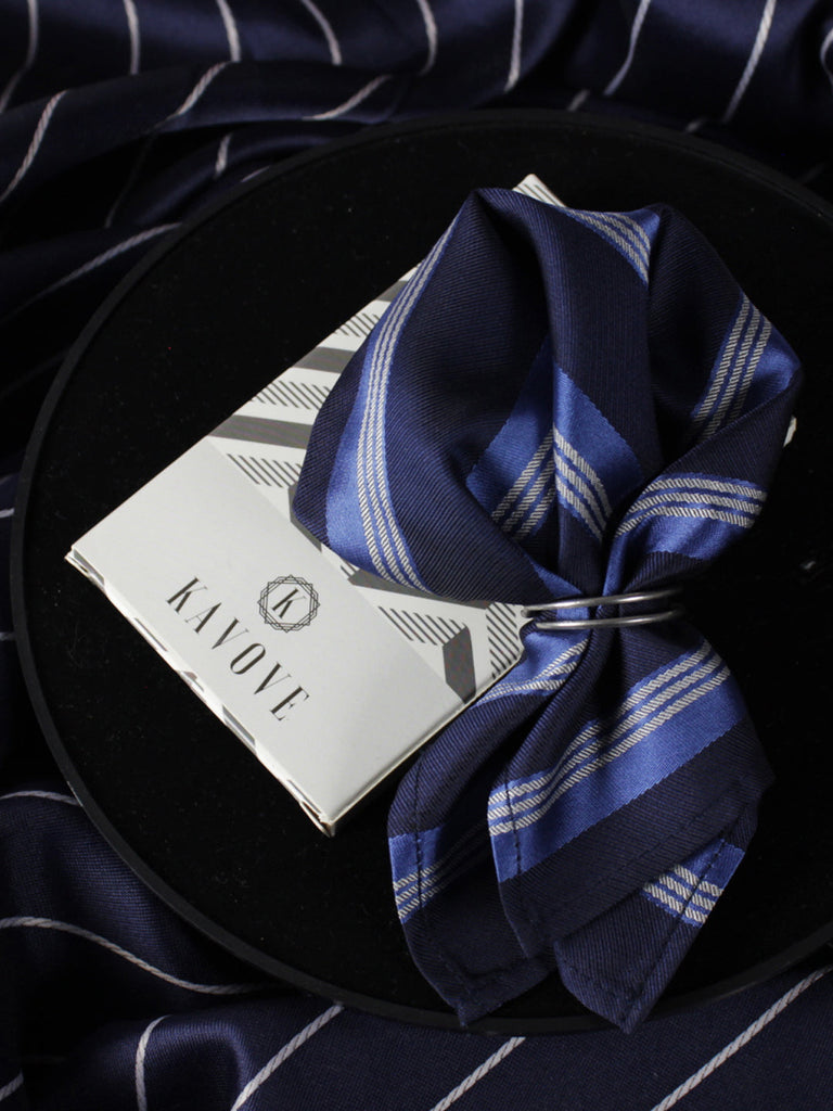 Kavove The Striped Grande Blue Pocket Square