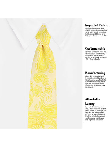 ABOUT THE PRODUCT: Buy this Yellow colored Paisley tie and pocket square for men from the house of Kavove, the perfect men's gift combo that effortlessly combines style and versatility. This meticulously curated tie set for men includes a premium tie and a versatile pocket square, both designed with utmost attention to detail by Kavove. The tie, made with fine craftsmanship and quality materials, adds a touch of sophistication to any ensemble. The coordinating pocket square complements the tie perfectly, allowing for endless styling options. This tie gift set for men is the ultimate gift combo, perfect tie gift set, whether it's for a formal event, a business meeting, or a special occasion. Elevate his style with the Kavove tie and pocket square gift set for men. |