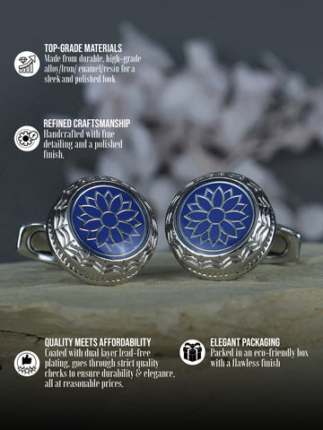 ABOUT THE PRODUCT: Buy these Blue & Silver Round cufflinks for men by Kavove, the perfect accessory to complete your sophisticated look. These elegant cufflinks are crafted with utmost precision and attention to detail, ensuring top-notch quality. Made from premium materials, they exude a sleek and polished appearance. These cuff links for men are versatile and can be effortlessly paired with any formal or casual attire. With their easy-to-use design, they add a touch of refinement to your ensemble in seconds. Elevate your style game with this Kavove cufflink and make a lasting impression at any event. Upgrade your wardrobe with these stylish accessories and embrace timeless elegance. |