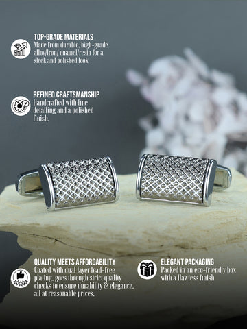 ABOUT THE PRODUCT: Buy these Silver Rectangle cufflinks for men by Kavove, the perfect accessory to complete your sophisticated look. These elegant cufflinks are crafted with utmost precision and attention to detail, ensuring top-notch quality. Made from premium materials, they exude a sleek and polished appearance. These cuff links for men are versatile and can be effortlessly paired with any formal or casual attire. With their easy-to-use design, they add a touch of refinement to your ensemble in seconds. Elevate your style game with this Kavove cufflink and make a lasting impression at any event. Upgrade your wardrobe with these stylish accessories and embrace timeless elegance. |