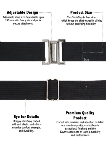 About Product Buy this Black Plaid Elastic Shirt Stay by Kavove and ensure a sharp, professional look, with all-day comfort and durability. Made from adjustable elastic, these shirt garters feature strong and non-slip metal clips firmly grips your shirt without damaging the fabric. Ideal for professionals, military personnel, and anyone seeking a neat appearance, our shirt stays prevent untucking and wrinkles, so you look polished and confident throughout the day. Quality - Premium Quality with refined elasticity and the highest threshold for stretchiness. Very flexible, strong and durable. The metal clasps are plated with finest silver rhodium as Peluche believes in zero compromise with Quality. Size - Free Size. Being an elastic shirt stay, it fits one and all perfectly and there is no ideal size. Complete length is 90 cms and can be easily stretched upto 150 cms. Printing Technique - We use high quality printing techniques on our suspenders, which means the prints will not disfigure on being stretched. Commitment - Peluche is committed to manufacture only high quality products. We are passionate about bringing the best in class men accessories and we are 100% confident that if you have used our product once, you will always come back to us. Packaging - We know how important it is to store prized possessions well. Hence, every shirt stay is impeccably packed in a beautiful and classy premium storage chic box. |