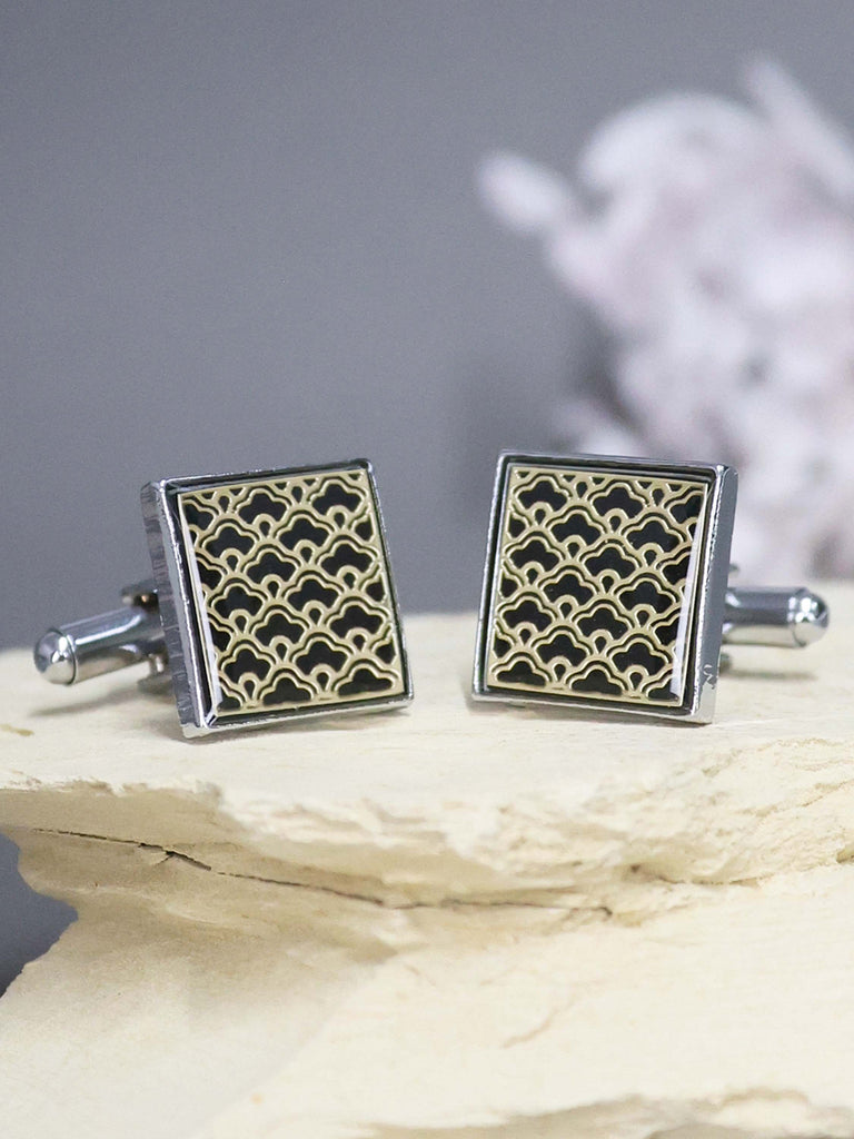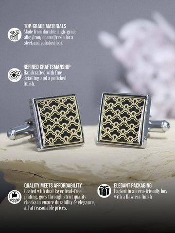 ABOUT THE PRODUCT: Buy these Black & Golden Square cufflinks for men by Kavove, the perfect accessory to complete your sophisticated look. These elegant cufflinks are crafted with utmost precision and attention to detail, ensuring top-notch quality. Made from premium materials, they exude a sleek and polished appearance. These cuff links for men are versatile and can be effortlessly paired with any formal or casual attire. With their easy-to-use design, they add a touch of refinement to your ensemble in seconds. Elevate your style game with this Kavove cufflink and make a lasting impression at any event. Upgrade your wardrobe with these stylish accessories and embrace timeless elegance. |